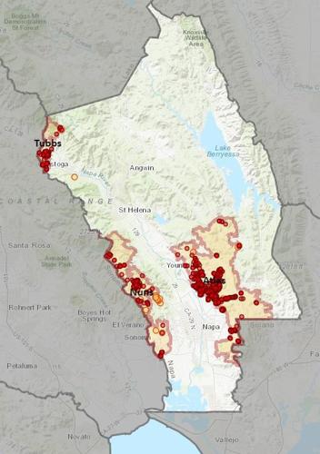 Interactive map of the Sonoma’s Walbridge and Napa’s Hennessey fires