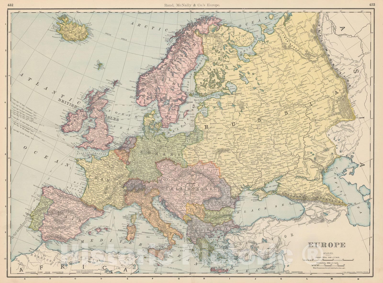 Historic Map : Europe 1903 , Rand McNally Business Atlas , Vintage
